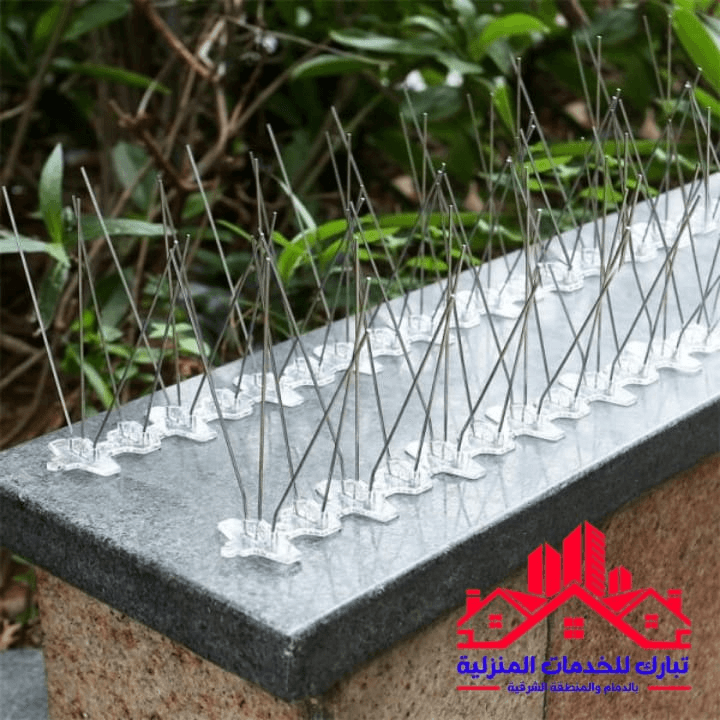 - تُثبت الأشواك المصنوعة من مواد بلاستيكية أو معدنية على الحواف والأماكن التي يتجمع عليها الحمام، مما يجعلها مكانًا غير مستقر وغير مرغوب فيه.