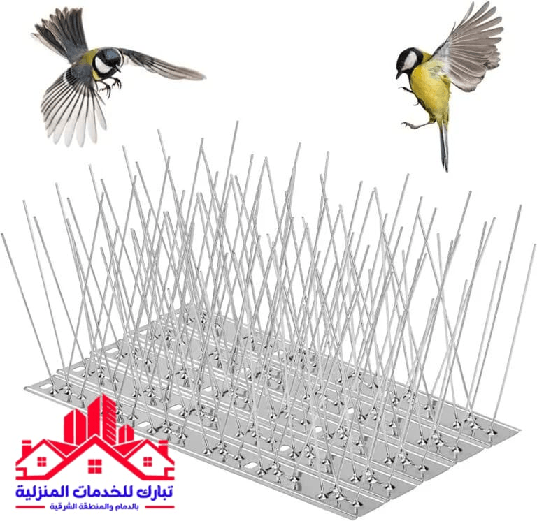 - تُثبت الأشواك المصنوعة من مواد بلاستيكية أو معدنية على الحواف والأماكن التي يتجمع عليها الحمام، مما يجعلها مكانًا غير مستقر وغير مرغوب فيه.